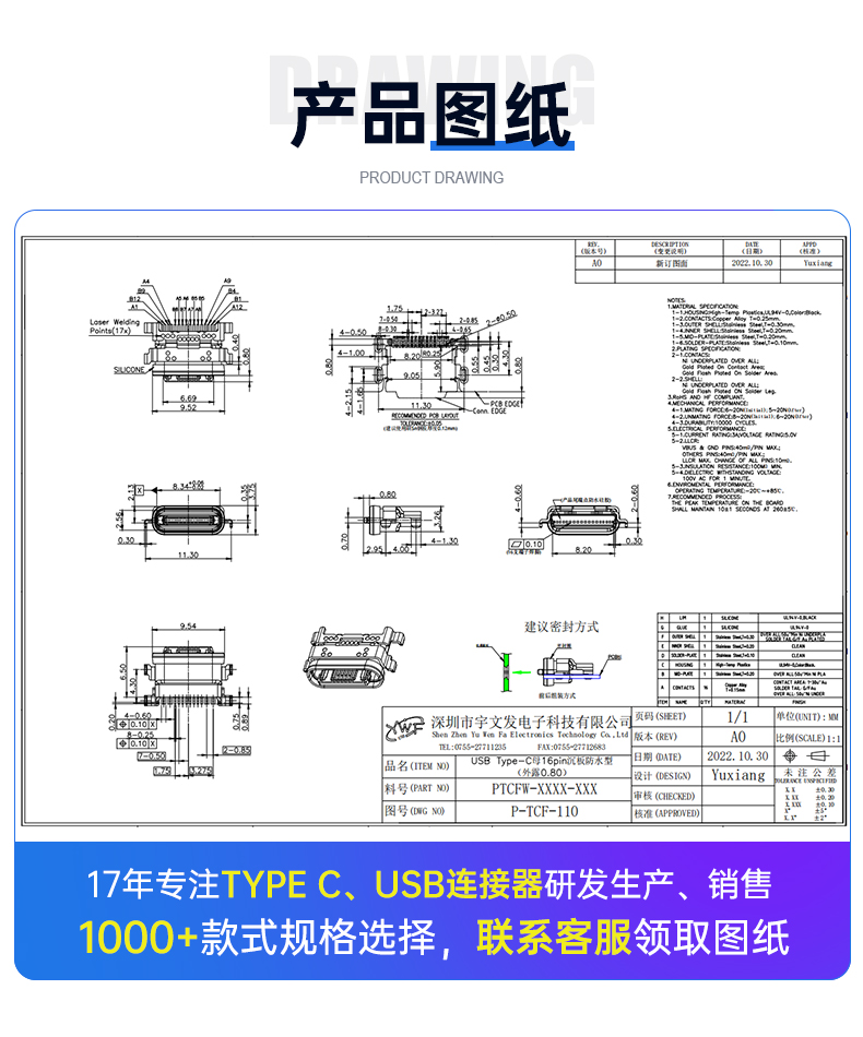 宇文发电子科技有限公司,是一家专业从事TYPEC母座/TYPEC公头、MINIUSB、MICROUSB、USB2.0等系列电子连接器的研发设计、生产制造与销售服务为一体的独资企业。