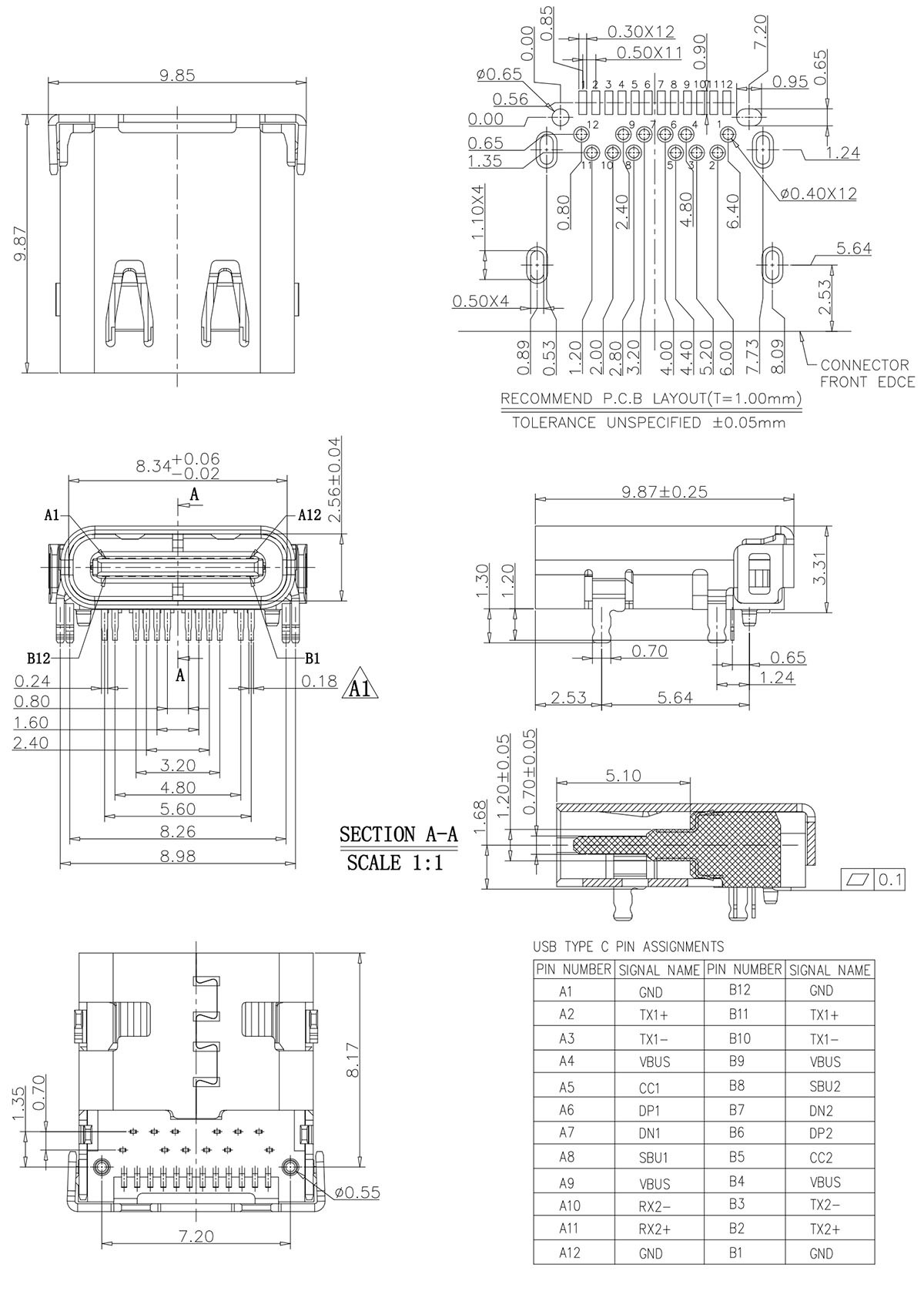 NOTES: 1.Material:See Table. 2.Finished:See Table. 3.Mechenical: 3-1:Insertion force: 0.5~2.0kgf. 3-2:Removal force: 0.8~2.0kgf. 3-3:Durability: 10000 times. 4.Electrical: 4-1:Current rating: 5.0A Max. 4-2:Voltage rating: 5.0V. 4-3:Insulation resistance:100MΩ Min. 4-4:Dielectric withstand voltage: AC 100V for 1Minute. 5.Environmental: Oferating temperature:-30℃~+80℃. 6.IR REFLOW: The peak temperature on the board shall be maintained for 10 seconds at 260℃.