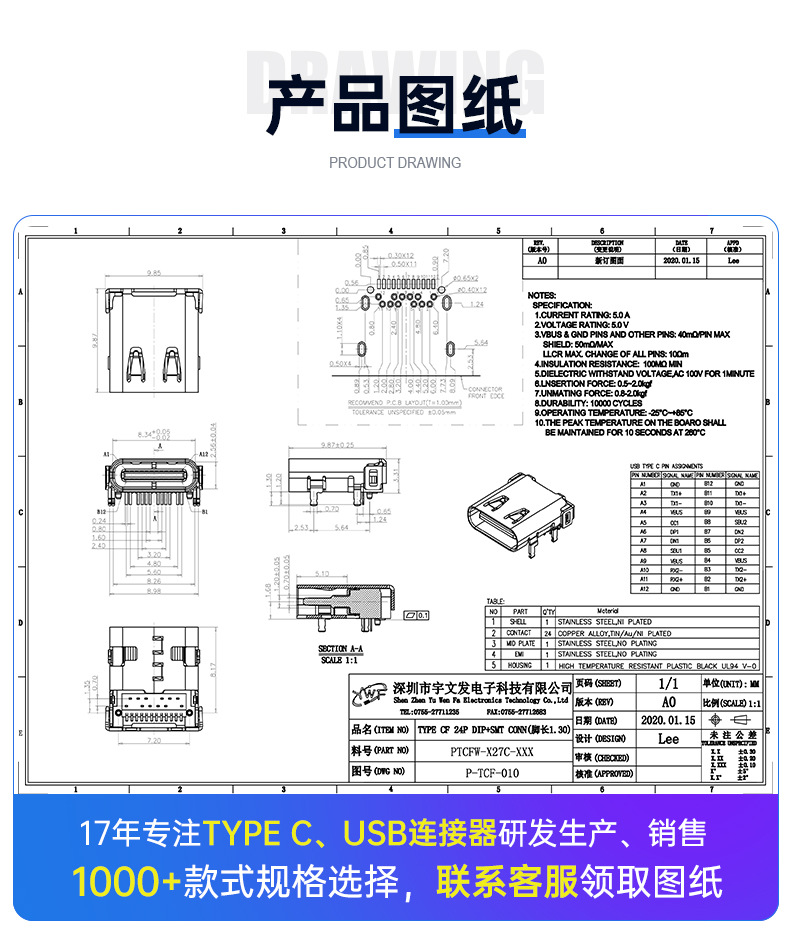 宇文发电子科技有限公司,是一家专业从事TYPEC母座/TYPEC公头、MINIUSB、MICROUSB、USB2.0等系列电子连接器的研发设计、生产制造与销售服务为一体的独资企业。