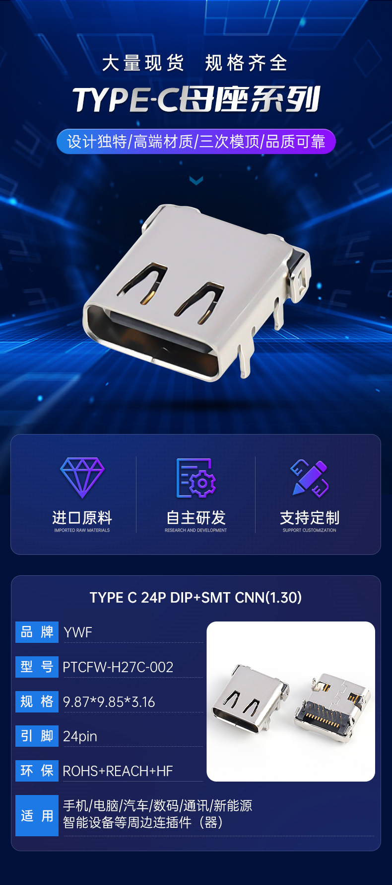 TYPE C 24母座 DIP+SMT CNN(1.30)