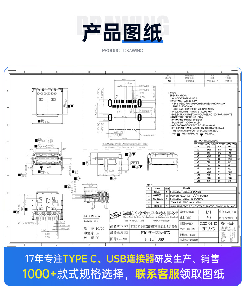 宇文发电子科技有限公司,是一家专业从事TYPEC母座/TYPEC公头、MINIUSB、MICROUSB、USB2.0等系列电子连接器的研发设计、生产制造与销售服务为一体的独资企业。