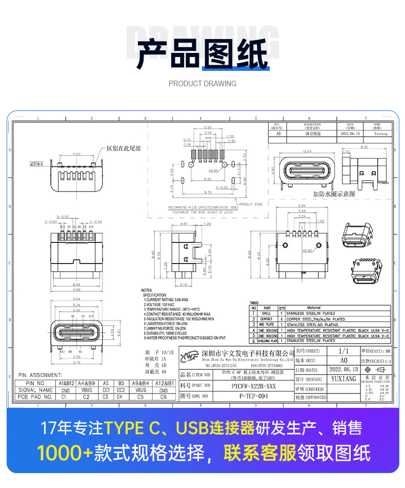 宇文发电子科技有限公司,是一家专业从事TYPEC母座/TYPEC公头、MINIUSB、MICROUSB、USB2.0等系列电子连接器的研发设计、生产制造与销售服务为一体的独资企业。