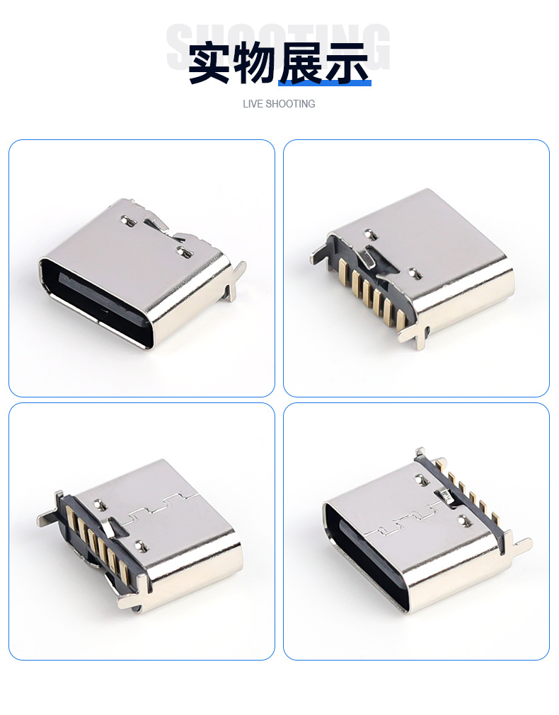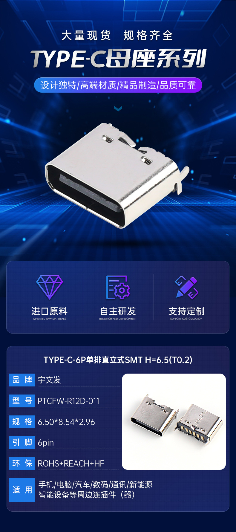 TYPE C母座 6P单排直立式SMT H=6.5