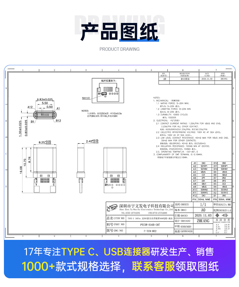 宇文发电子科技有限公司,是一家专业从事TYPEC母座/TYPEC公头、MINIUSB、MICROUSB、USB2.0等系列电子连接器的研发设计、生产制造与销售服务为一体的独资企业。