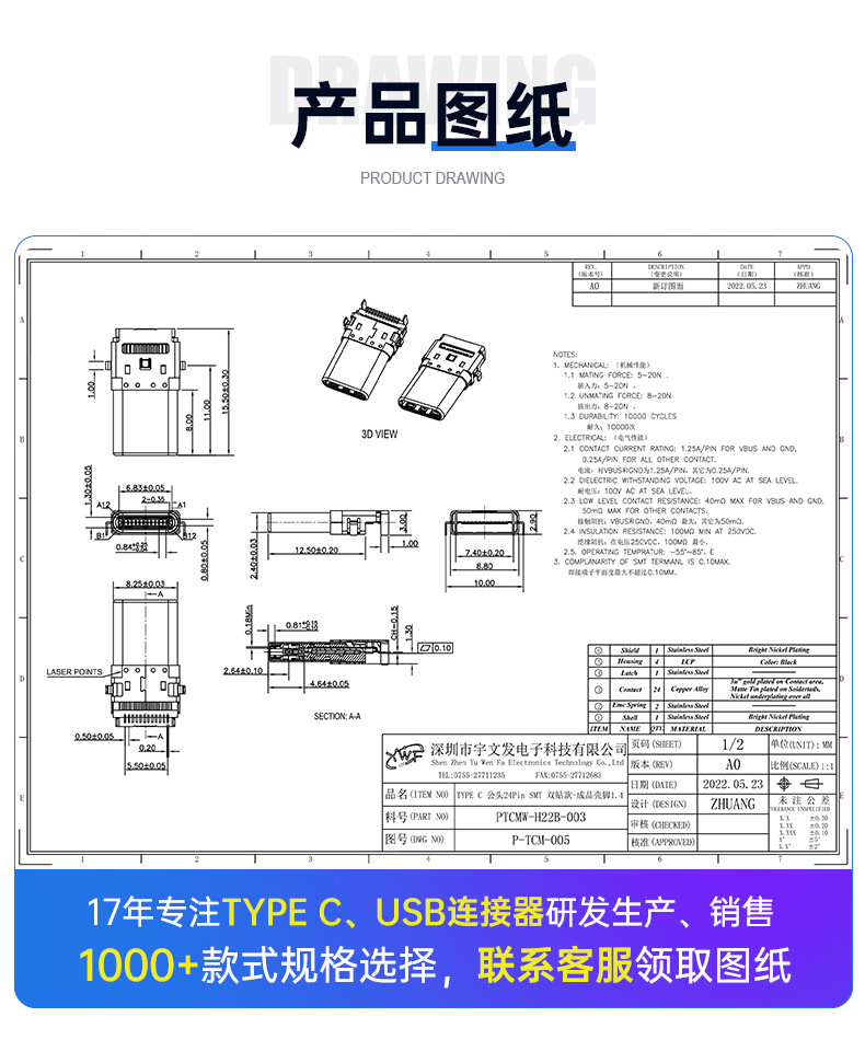 宇文发电子科技有限公司,是一家专业从事TYPEC母座/TYPEC公头、MINIUSB、MICROUSB、USB2.0等系列电子连接器的研发设计、生产制造与销售服务为一体的独资企业。