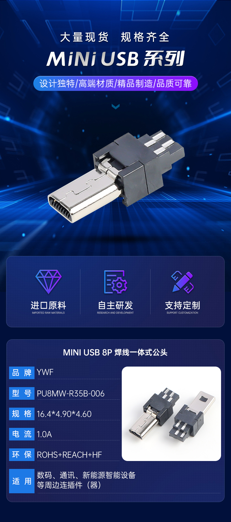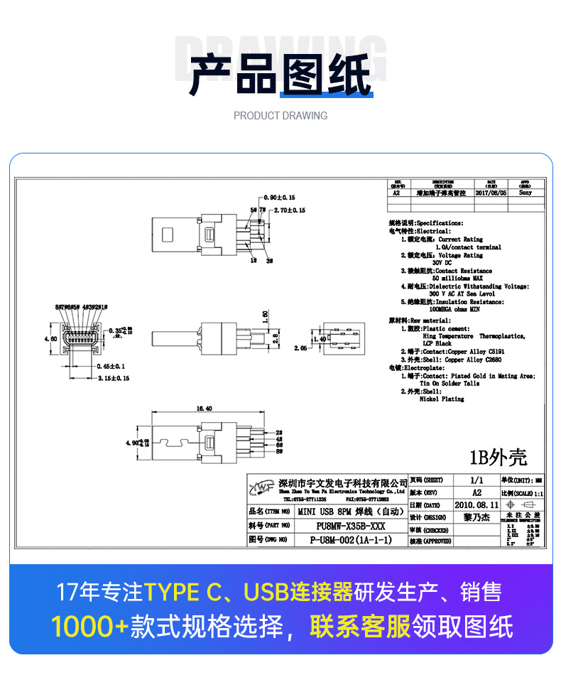 宇文发电子科技有限公司,是一家专业从事TYPEC母座/TYPEC公头、MINIUSB、MICROUSB、USB2.0等系列电子连接器的研发设计、生产制造与销售服务为一体的独资企业。