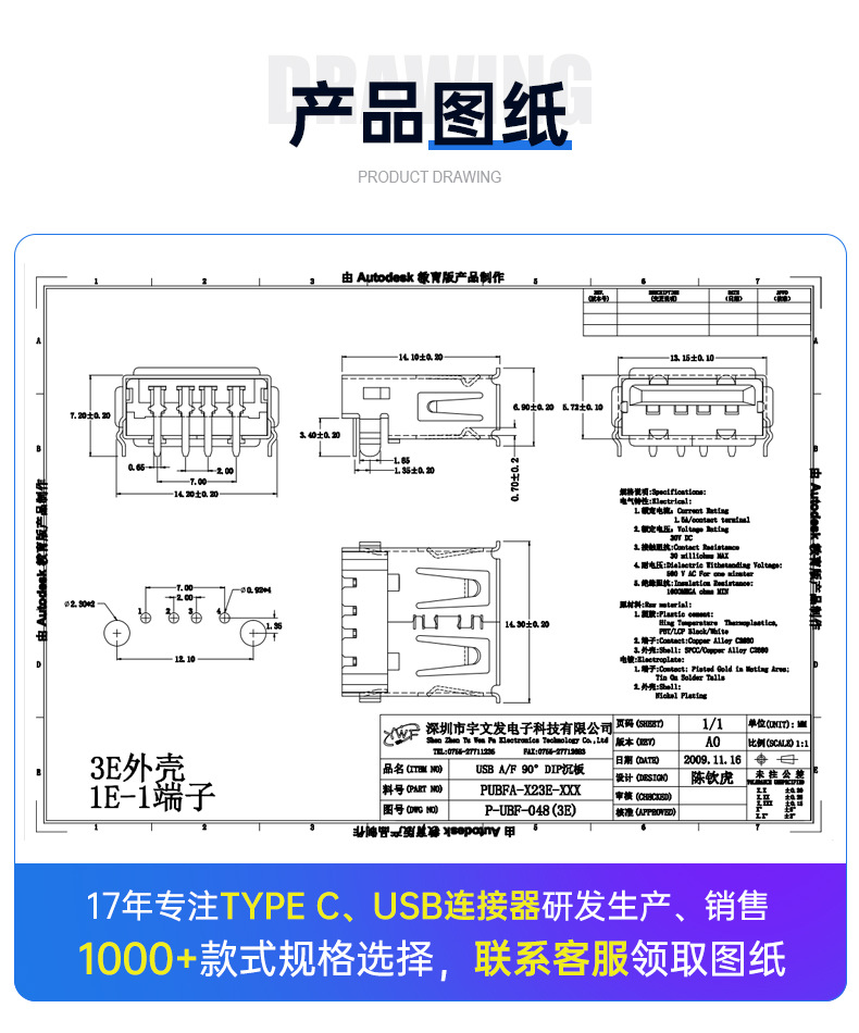 宇文发电子科技有限公司,是一家专业从事TYPEC母座/TYPEC公头、MINIUSB、MICROUSB、USB2.0等系列电子连接器的研发设计、生产制造与销售服务为一体的独资企业。