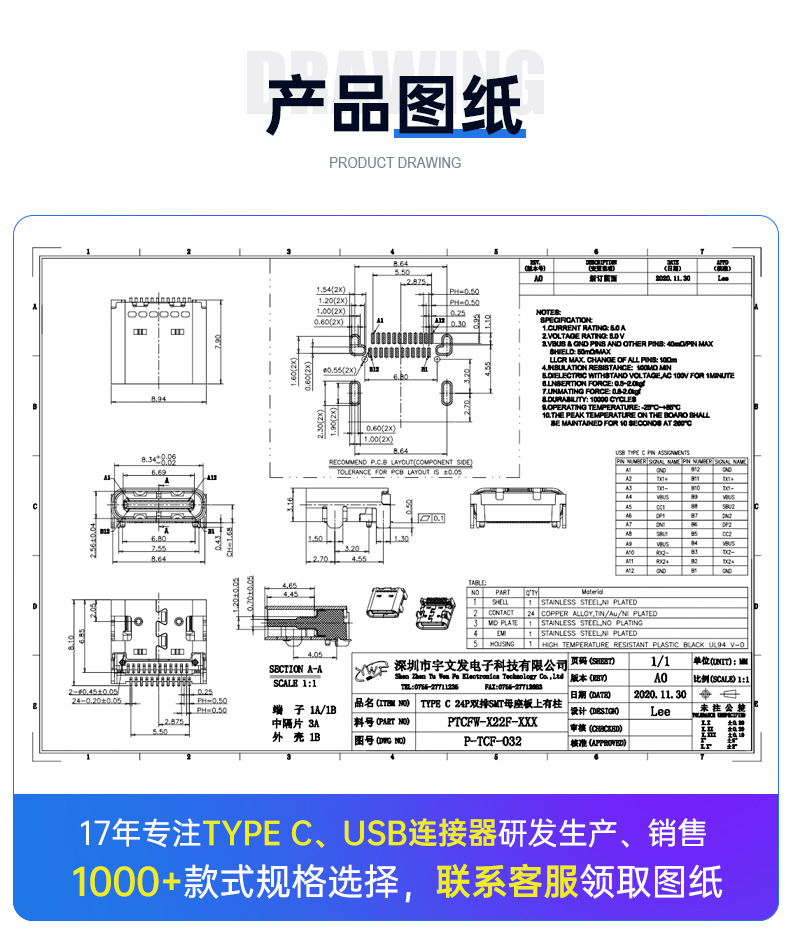宇文发电子科技有限公司,是一家专业从事TYPEC母座/TYPEC公头、MINIUSB、MICROUSB、USB2.0等系列电子连接器的研发设计、生产制造与销售服务为一体的独资企业。