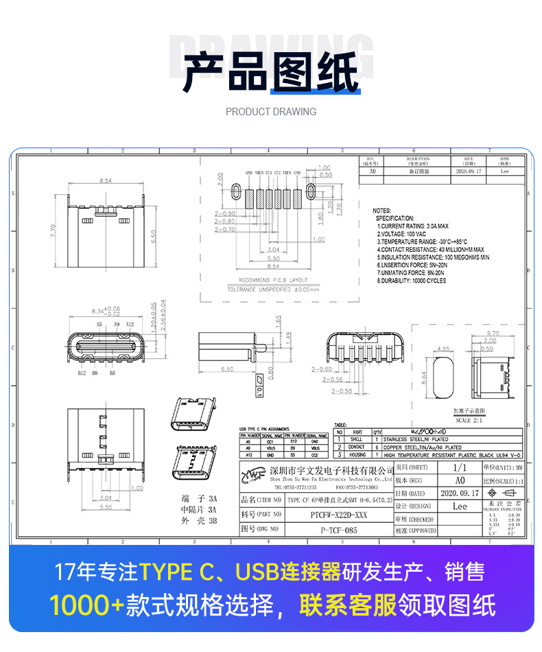 宇文发电子科技有限公司,是一家专业从事TYPEC母座/TYPEC公头、MINIUSB、MICROUSB、USB2.0等系列电子连接器的研发设计、生产制造与销售服务为一体的独资企业。