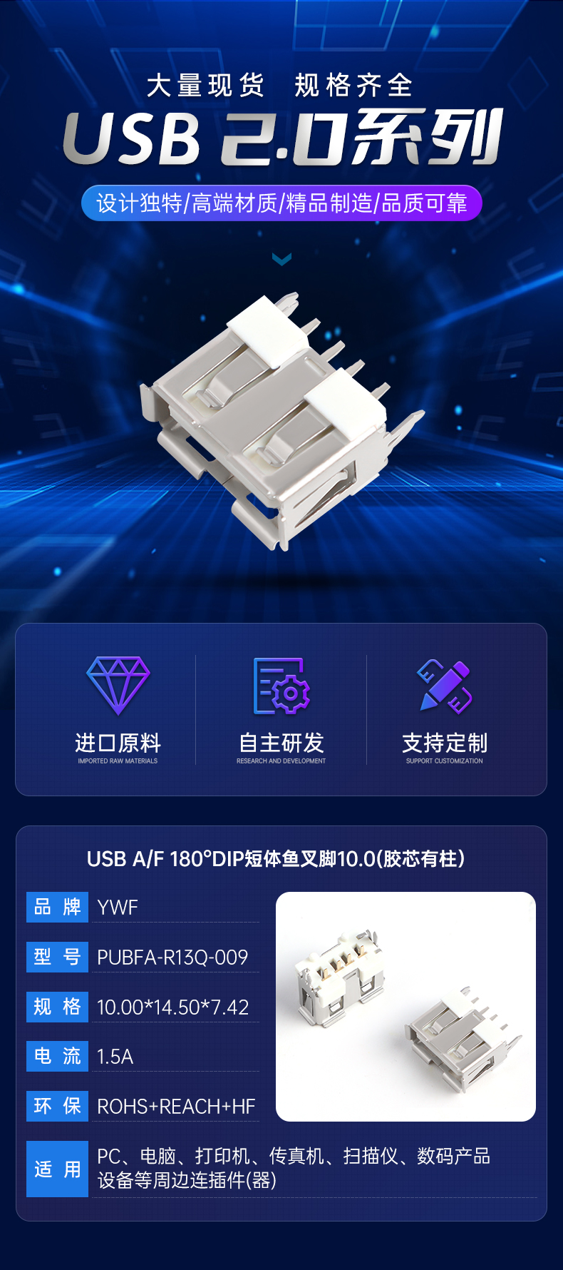 宇文发电子科技有限公司,是一家专业从事TYPEC母座/TYPEC公头、MINIUSB、MICROUSB、USB2.0等系列电子连接器的研发设计、生产制造与销售服务为一体的独资企业。