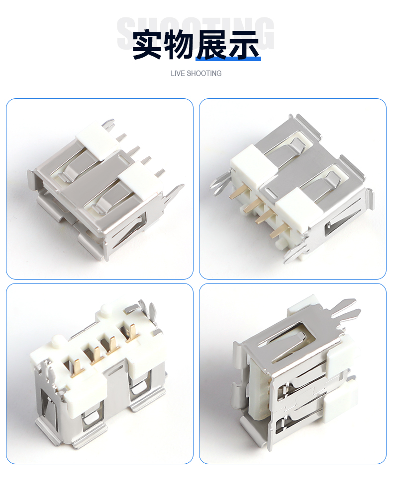USB A/F180° DIP短体鱼叉脚10.0(胶芯有柱)