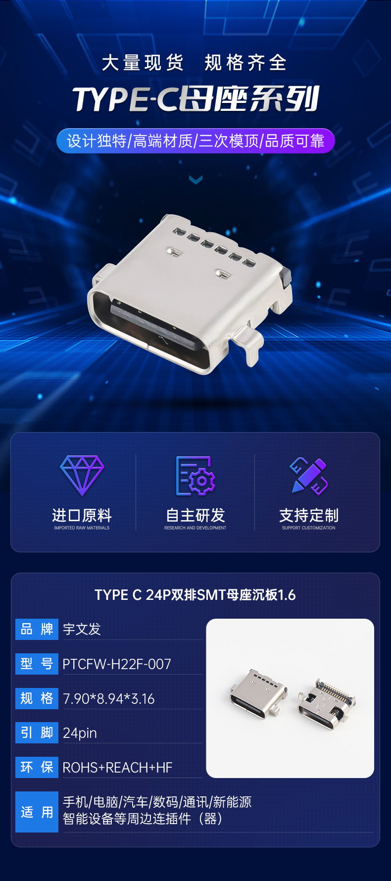 宇文发电子科技有限公司,是一家专业从事TYPEC母座/TYPEC公头、MINIUSB、MICROUSB、USB2.0等系列电子连接器的研发设计、生产制造与销售服务为一体的独资企业。